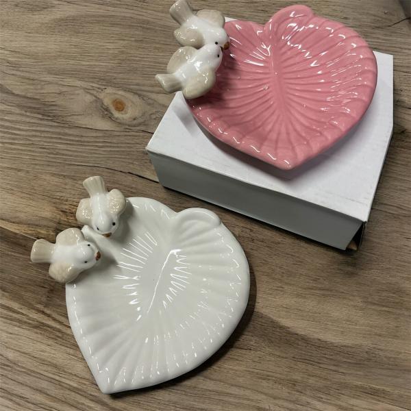 CUENCO CERAMICA HOJA PAREJA PAJARITO 14CM